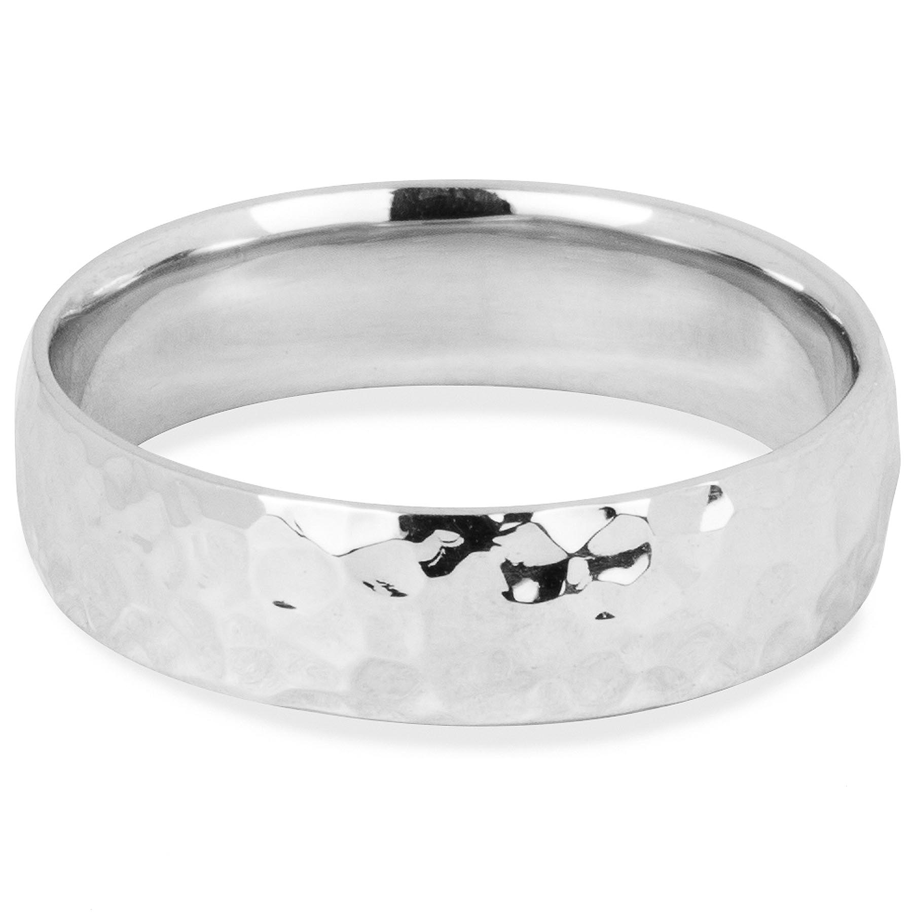 Alianza caballero clásica con un terminado original y diferente: amartillado. Disponible en oro blanco, rosa y amarillo 14K. Alianza sólida y con comfort fit para mayor comodidad.