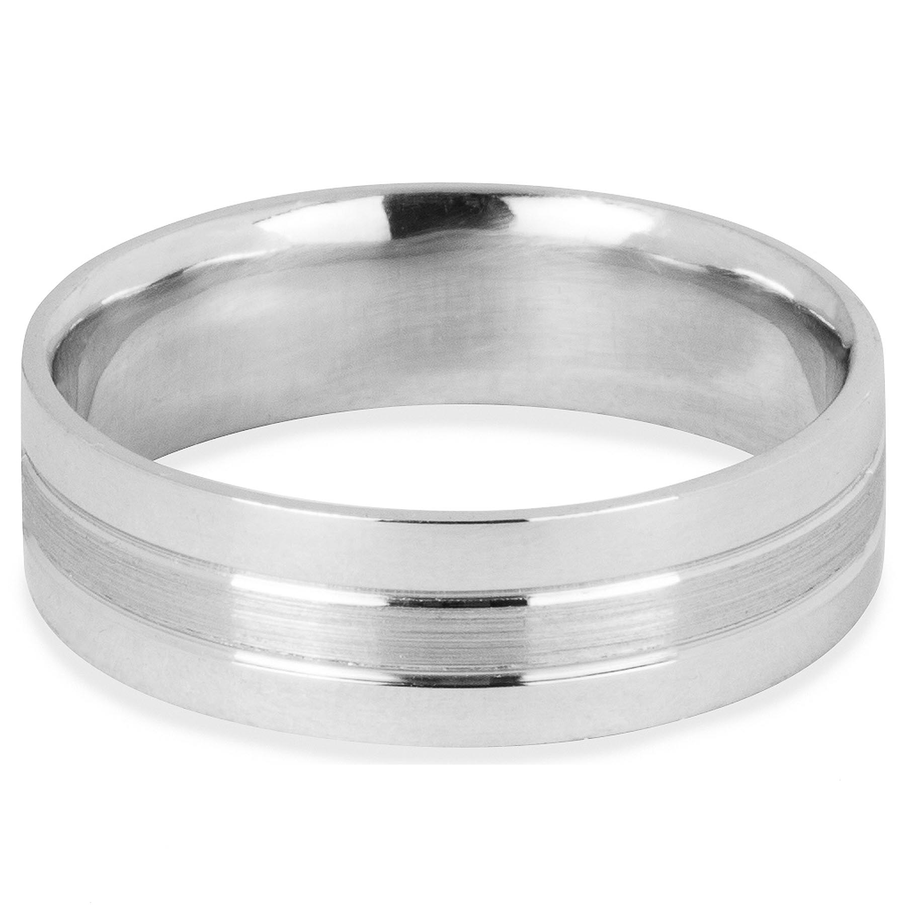 Alianza de matrimonio para caballero plana terminado mate lije, con dos franjas gruesas liso espejo. Disponible en oro blanco, rosa y amarillo 14K. Alianza sólida y con comfort fit para mayor comodidad.