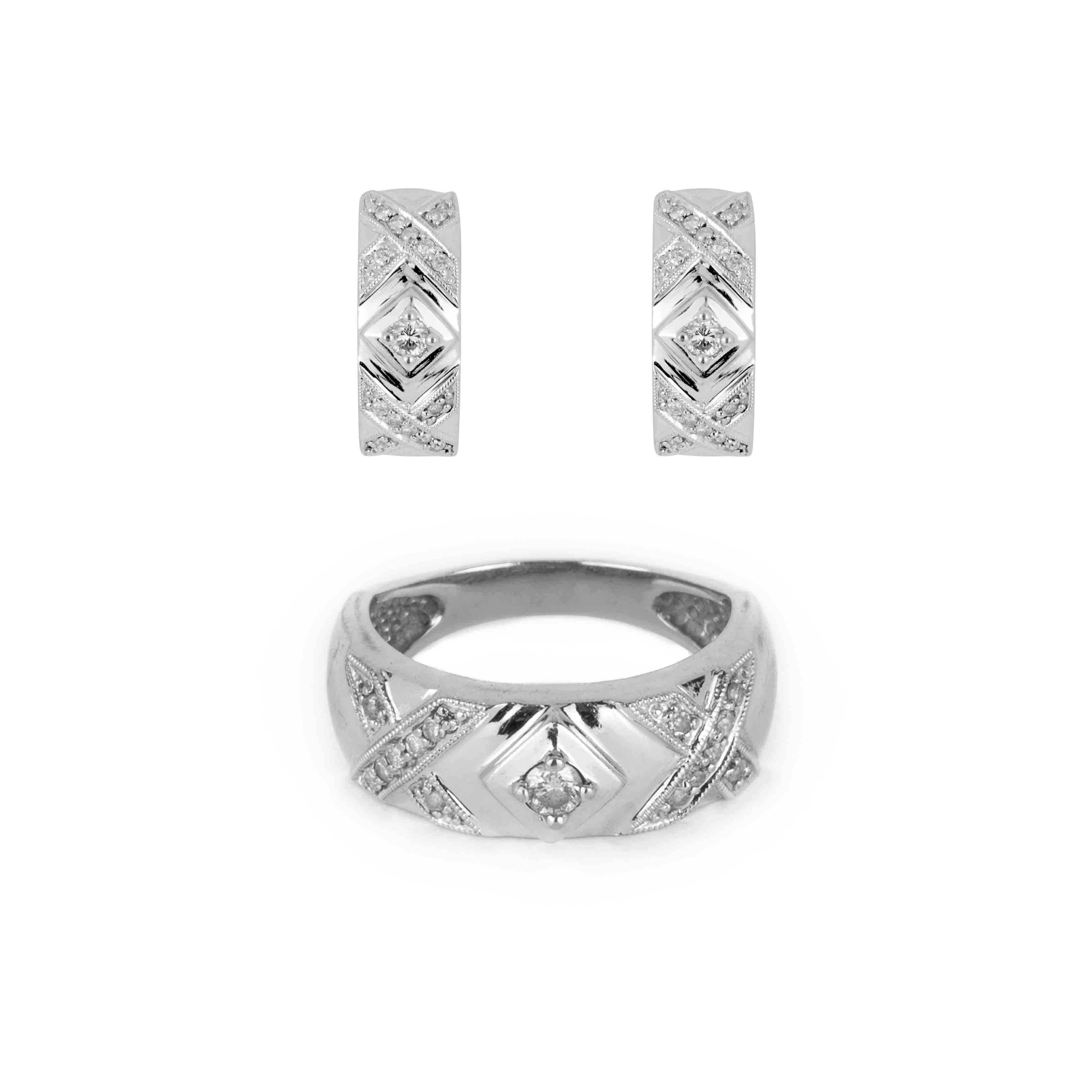 Juego de joyería fino fabricado en oro blanco 14K. Suma total de diamantes de 0.40 ct. Pieza única.