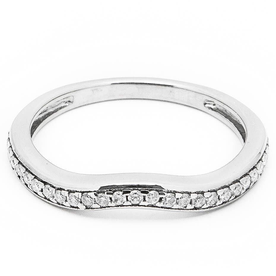 Churumbela para dama estilo twist, con ligera curva. Perfecta para embonar con cualquier anillo de compromiso no lineal. Disponible en oro blanco 14K.