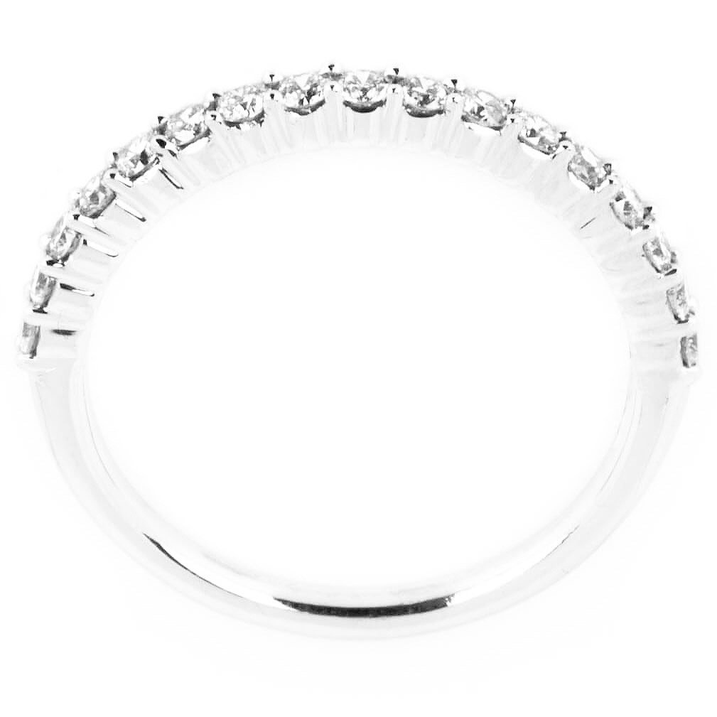 Alianza de matrimonio para novia, con 0.36 ct de diamante natural montados a pavé. Disponible en oro blanco 14K.