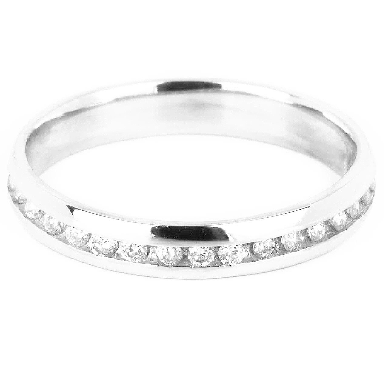 Churumbela para dama lisa media caña, con 0.24 ct de diamante natural estilo redondo brillante, montados a canal. Disponible en oro blanco, rosa y amarillo 14K.
