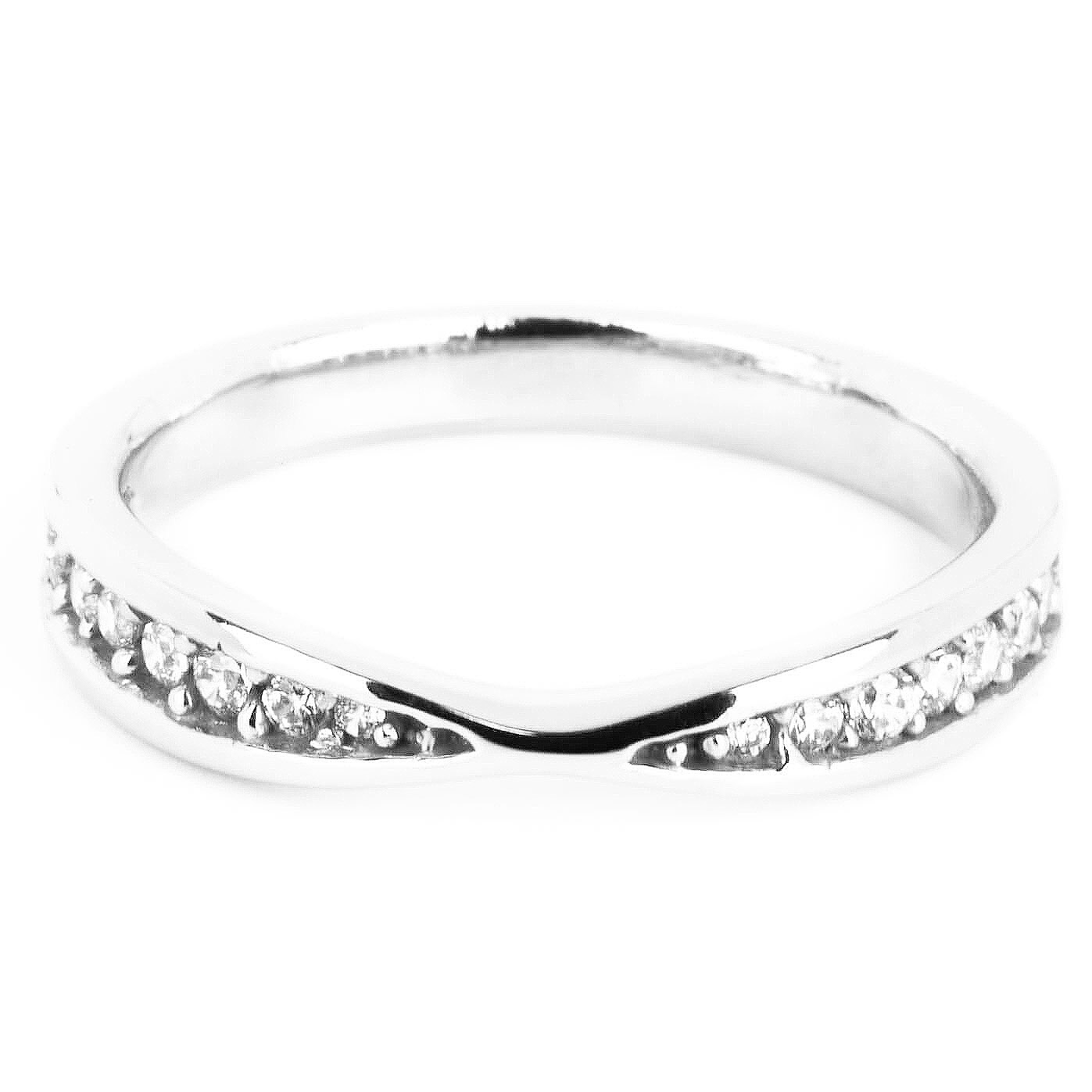 Alianza de matrimonio para dama estilo cruzado. Un modelo que fácilmente embona con tu anillo de compromiso. Disponible en oro blanco, rosa y amarillo 14K.