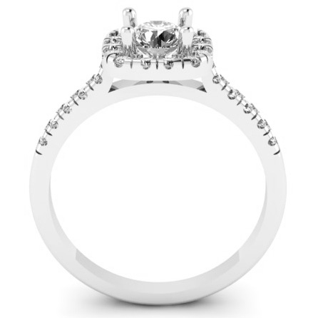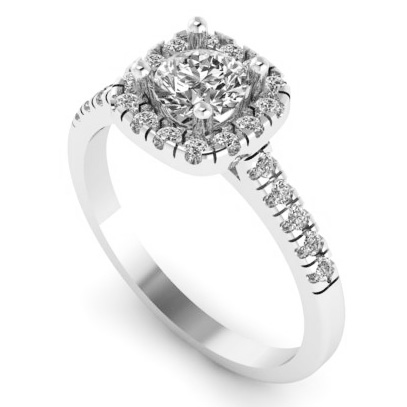 Montura para anillo de compromiso estilo halo cojín. Una excelente opción para realzar el brillo del diamante central. Disponible en oro blanco, rosa y amarillo 14K. El diamante central se vende por separado.