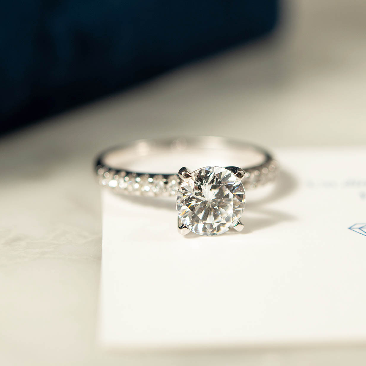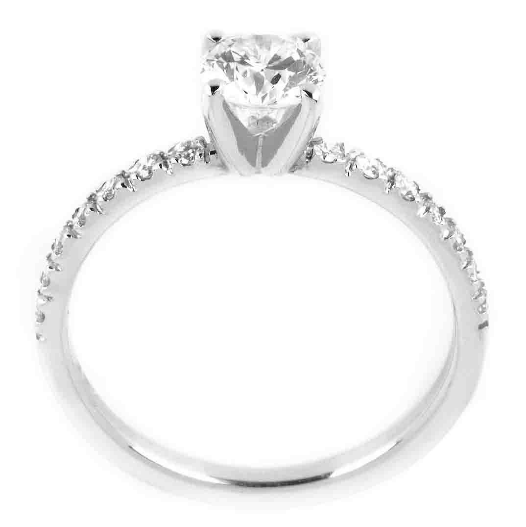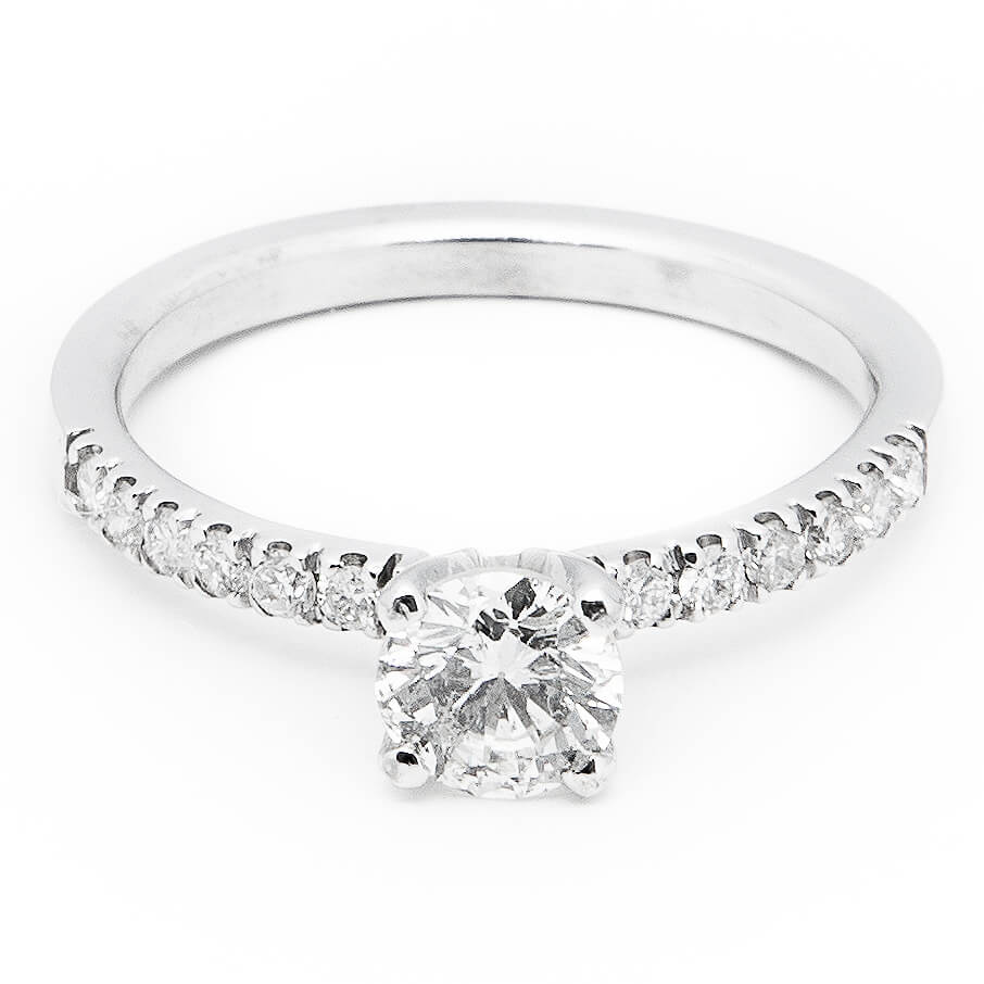 Uno de nuestros modelos favoritos. Montura para anillo de compromiso con 0.12 ct de diamantes laterales, para darle un brillo especial. Disponible en oro blanco, rosa, y amarillo 14K.