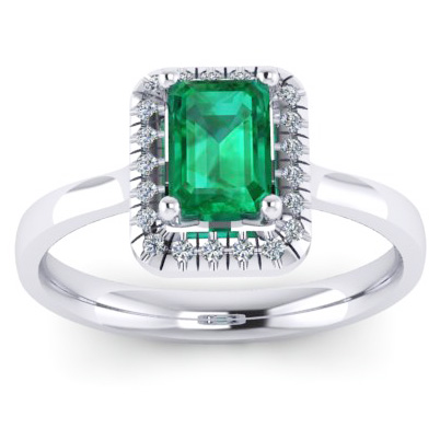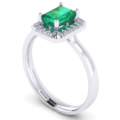 Montura para anillo de compromiso estilo halo esmeralda. Una excelente opción para realzar el brillo del diamante central. Disponible en oro blanco, rosa y amarillo 14K. La piedra central se vende por separado.