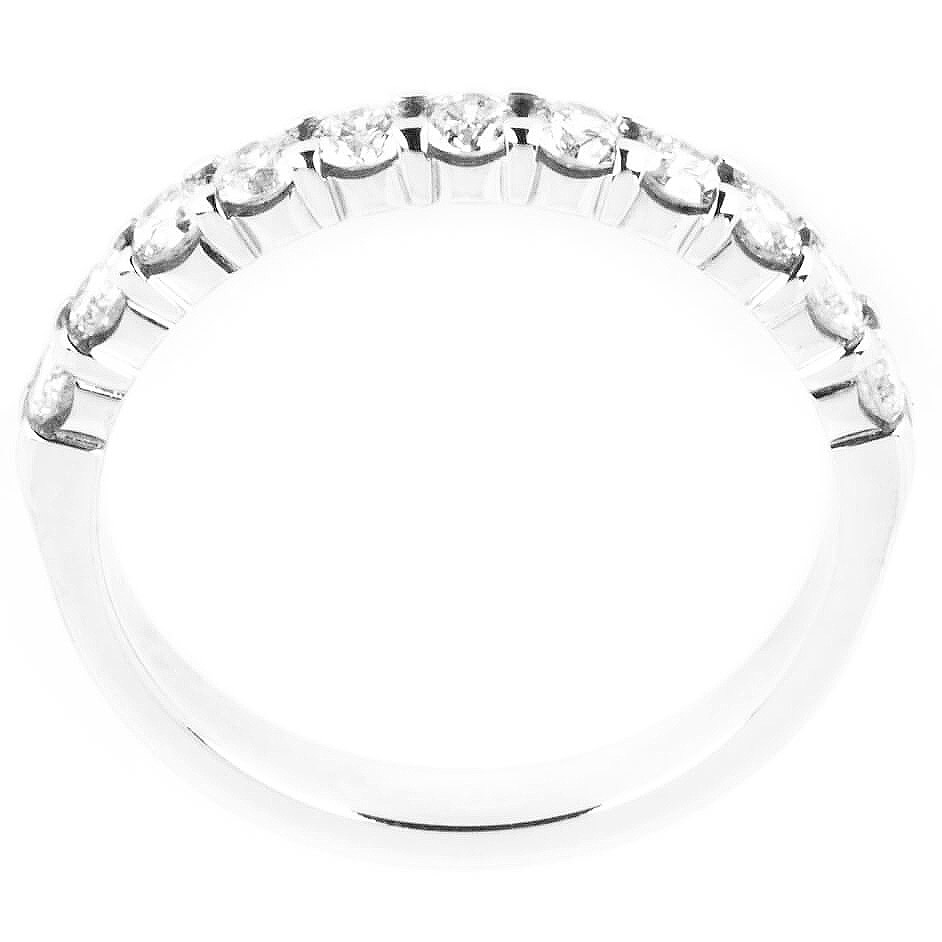Deslumbrante alianza de matrimonio para novia, con 0.50 ct de diamante natural montados a pavé. Ideal para anillo de compromiso de 1 ct. Disponible en oro blanco 14K.