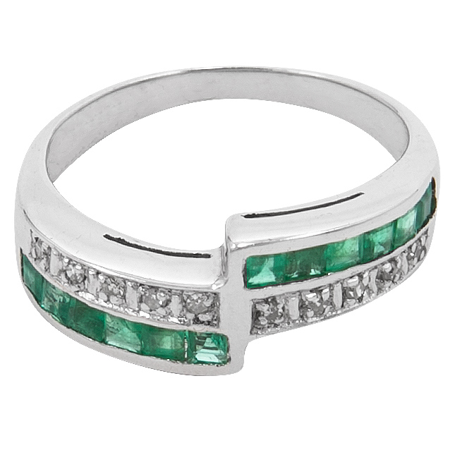 Hermoso anillo con esmeralda colombiana estilo princess y diamante natural redondo brillante. Anillo listo para entrega.