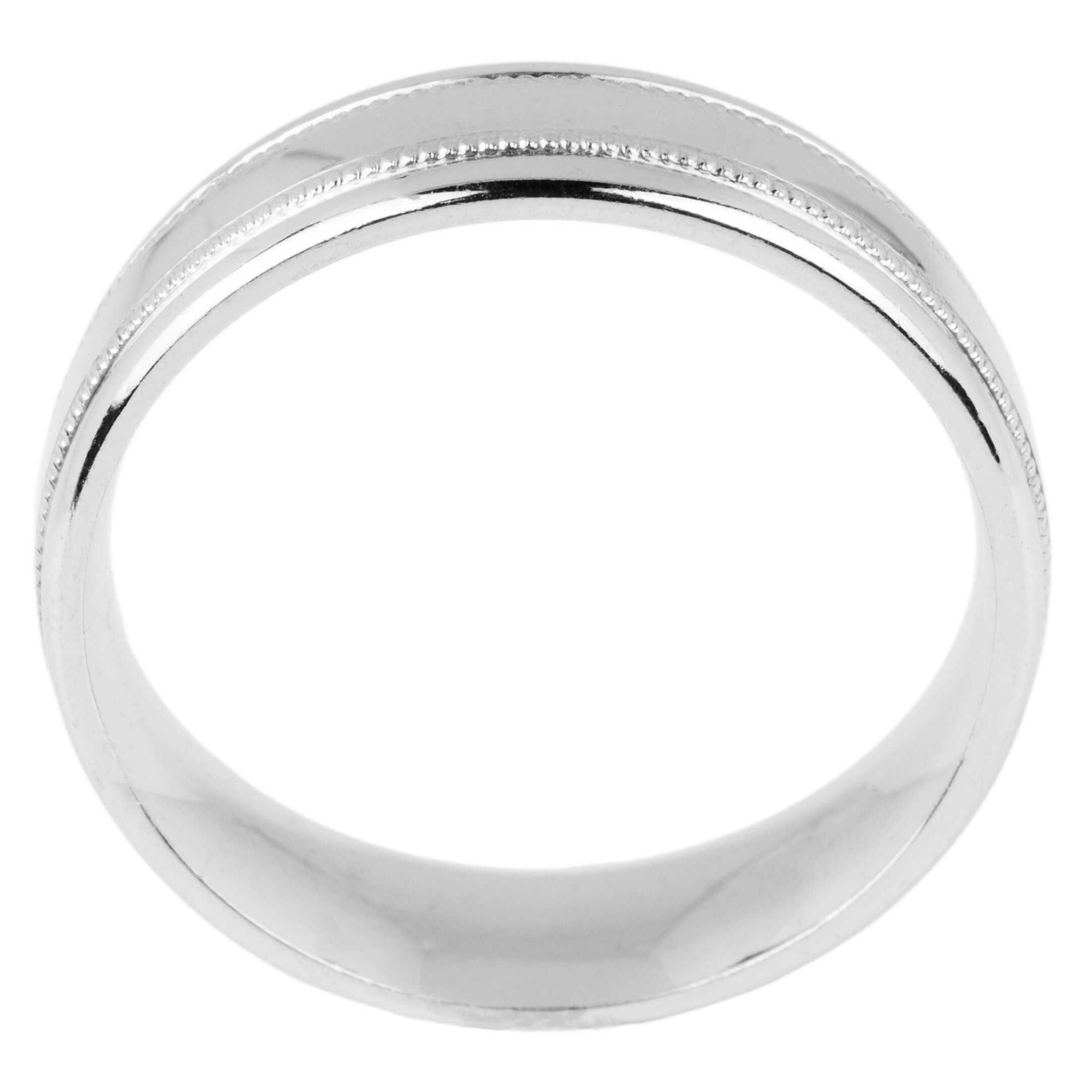 Alianza de matrimonio para caballero estilo lisa completa, con dos franjas terminado milgrain para darle un toque original y elegante. Disponible en oro blanco, rosa y amarillo 14K. Alianza sólida y con comfort fit para mayor comodidad.