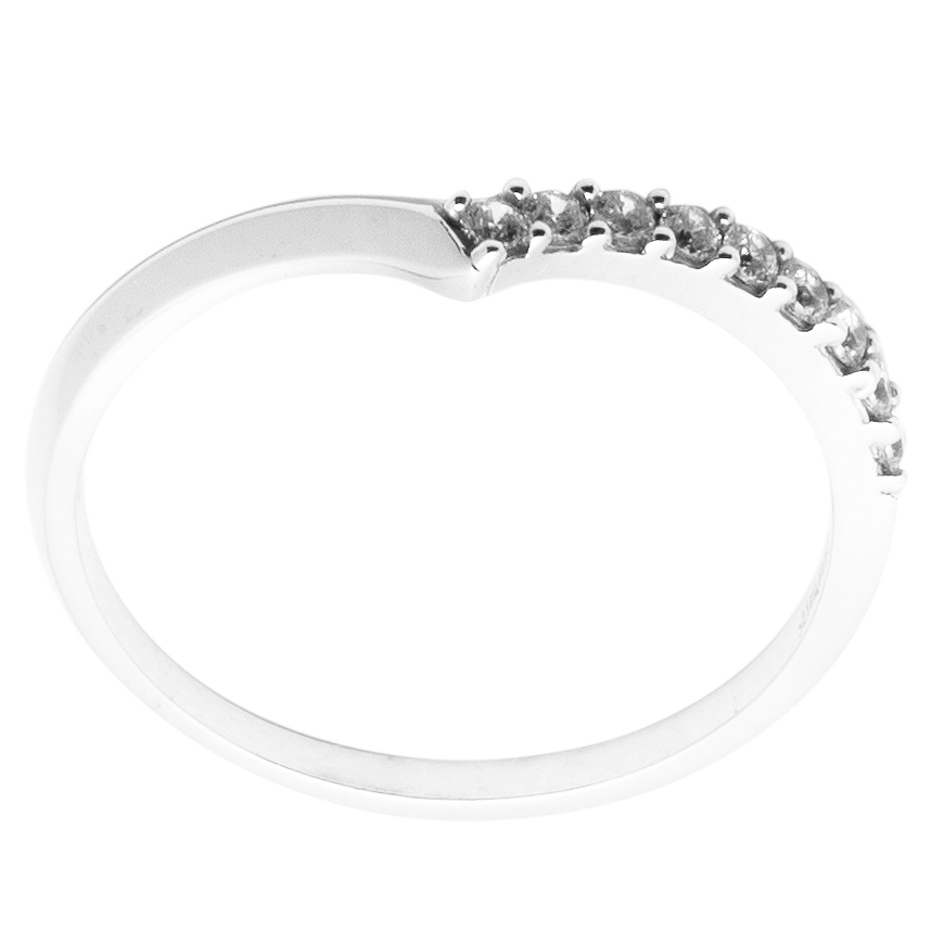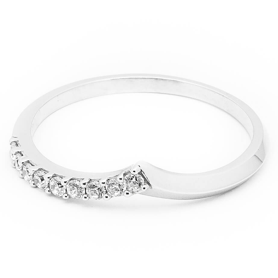 Alianza de matrimonio para dama estilo pavé "V". Perfecta para embonar con cualquier anillo de compromiso no lineal. Disponible en oro blanco 14K.