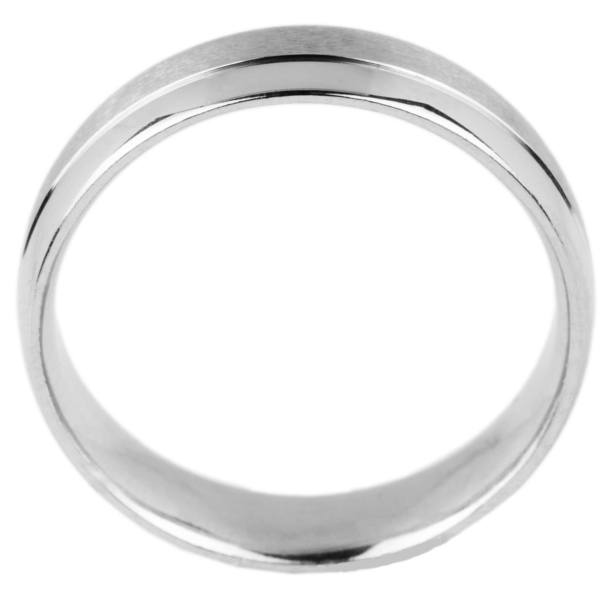 Alianza de matrimonio para caballero estilo lisa media caña, con una fina franja superior terminado mate. Disponible en oro blanco, rosa y amarillo 14K. Alianza sólida y con comfort fit para mayor comodidad.