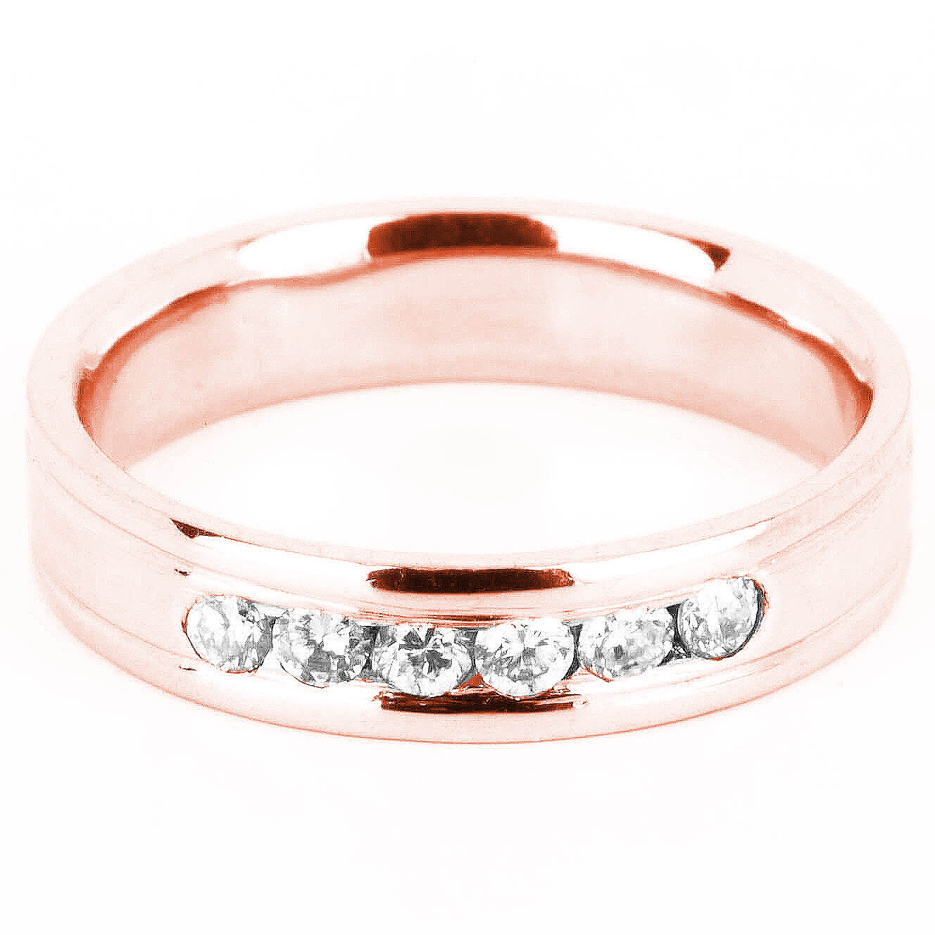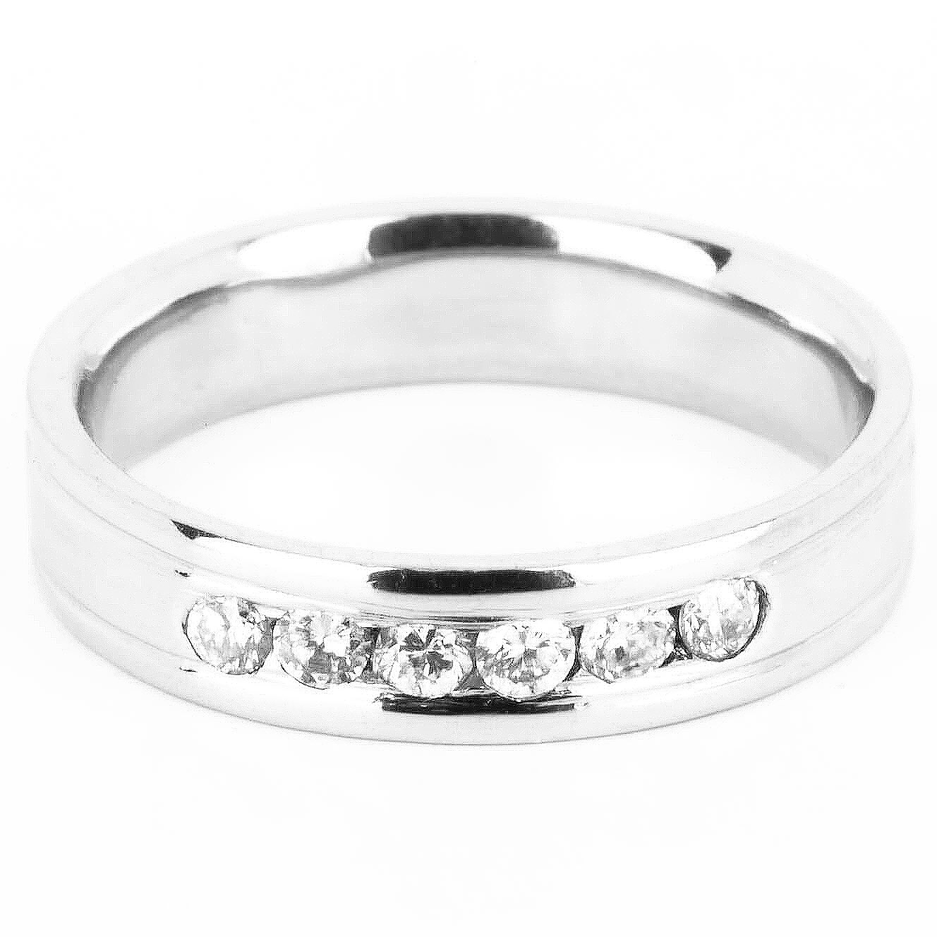 Churumbela para dama terminado liso completo, con dos finas franjas. Seis diamantes naturales corte redondo montados a canal (0.24 ct total). Disponible en oro blanco, rosa y amarillo 14K.