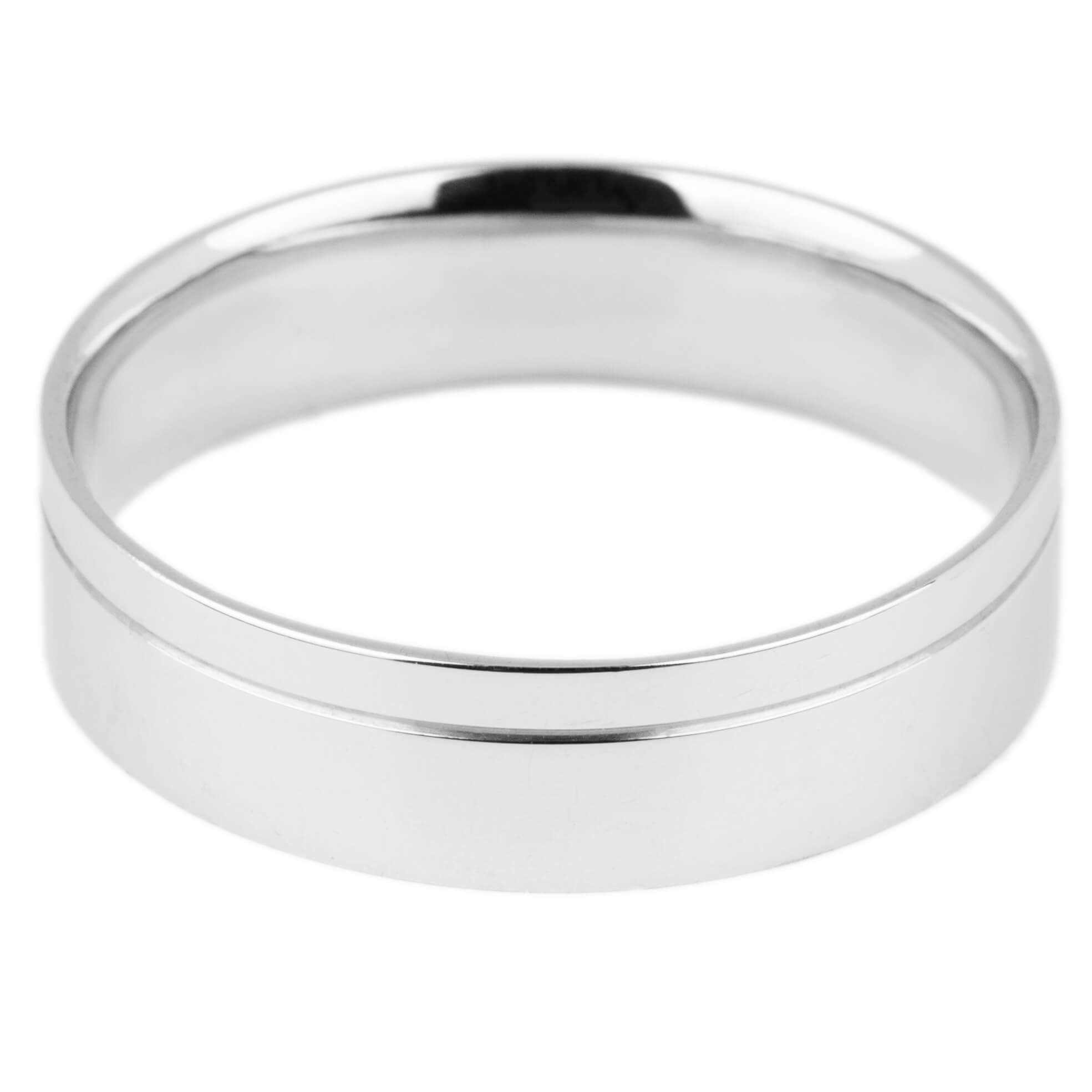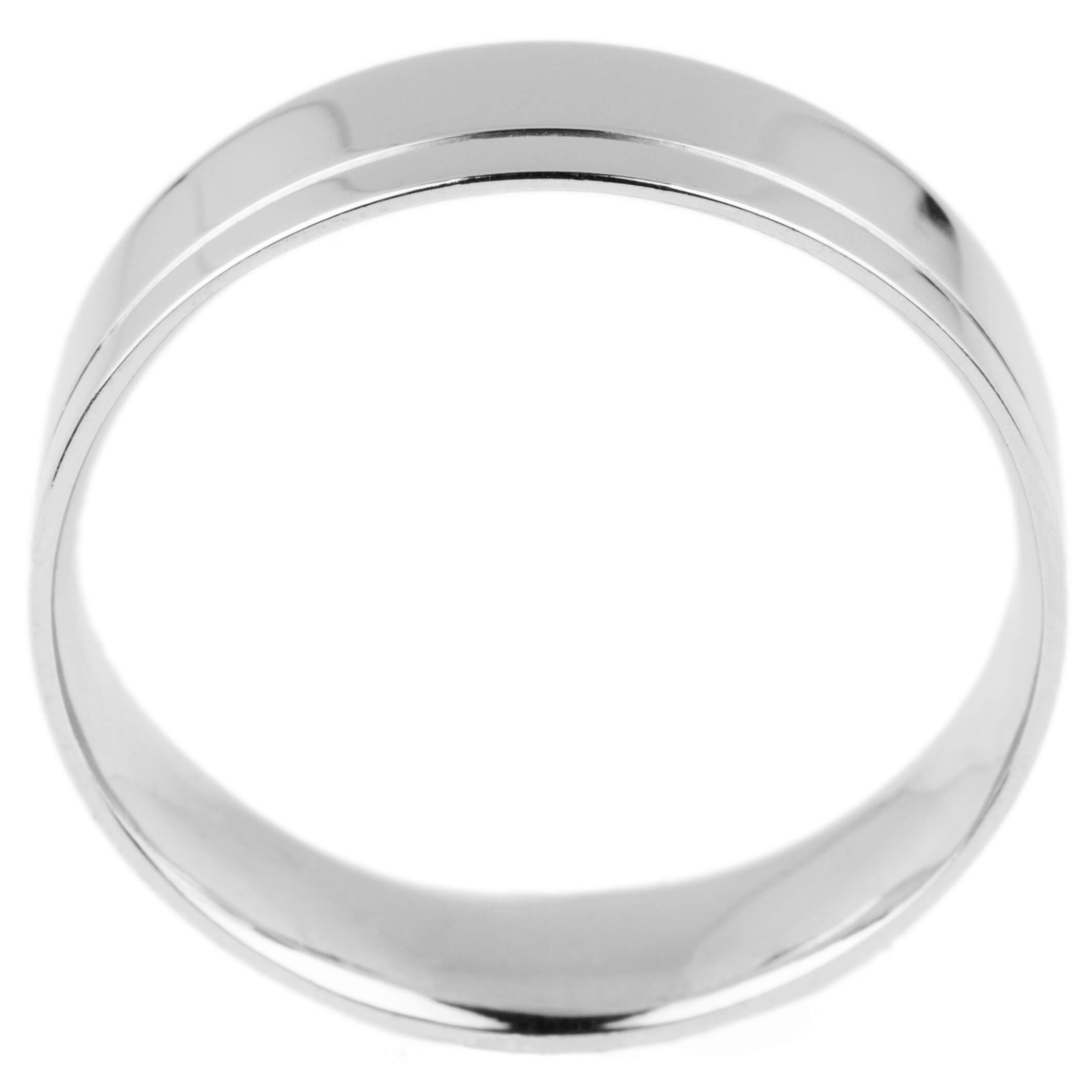 Alianza de matrimonio para caballero estilo liso completo, con franja superior. Un estilo minimalista. Disponible en oro blanco, rosa y amarillo 14K. Alianza sólida y con comfort fit para mayor comodidad.