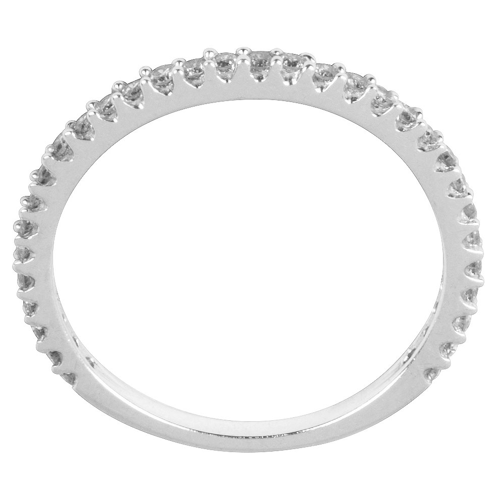 Alianza de matrimonio para novia con 3/4 de diamantes montados a micropavé. Ideal para anillo de compromiso elevado. Disponible en oro blanco 14K.