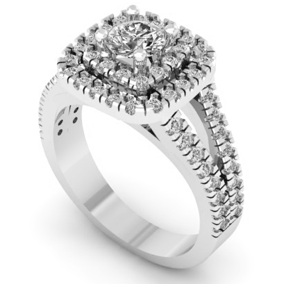 Montura halo doble, con 0.85 ct de diamante natural. Disponible en oro blanco, rosa y amarillo 14K ó 18K. El diamante centra se vende por separado.