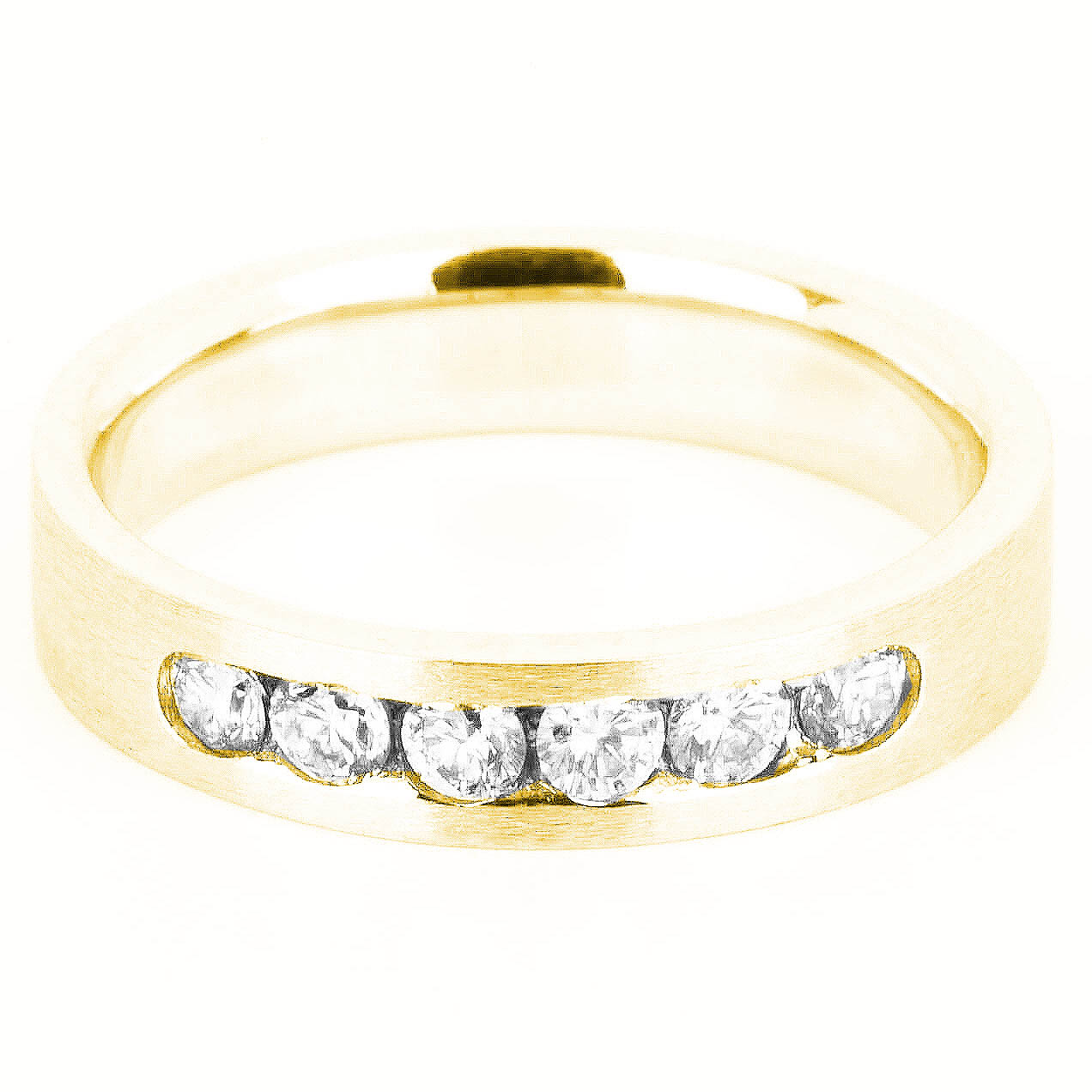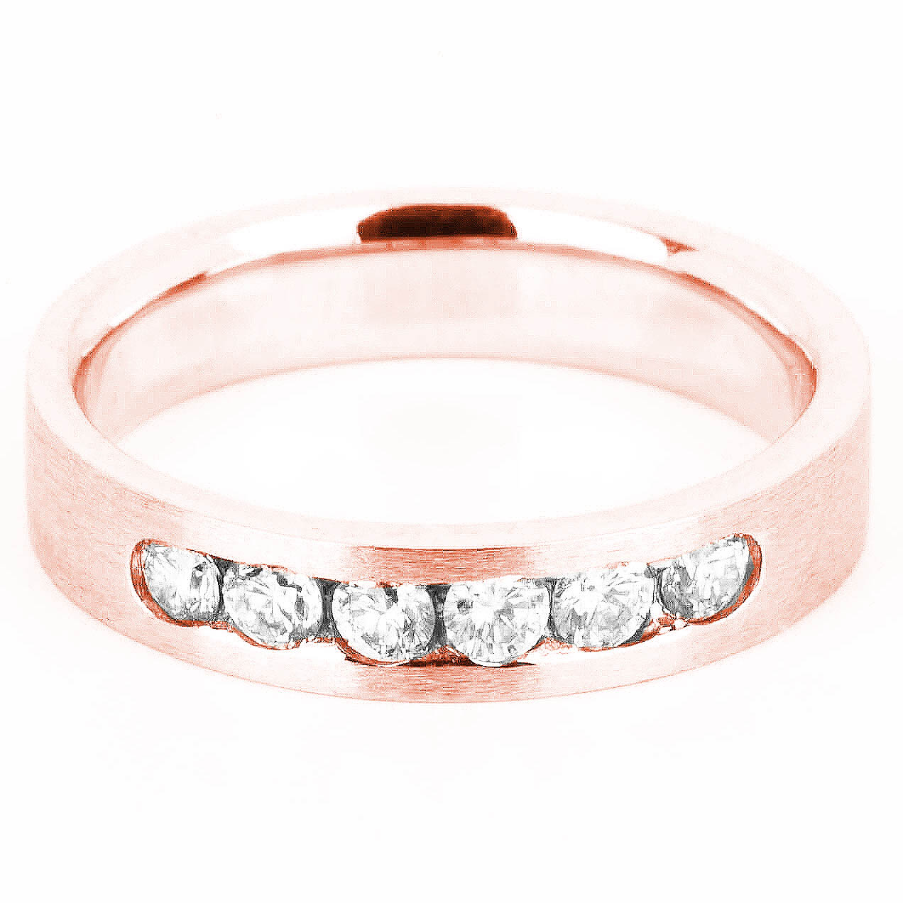 Churumbela para dama terminado mate, con 6 diamantes corte redondo montados a canal (0.30 ct total). Disponible en oro blanco, rosa y amarillo 14K.