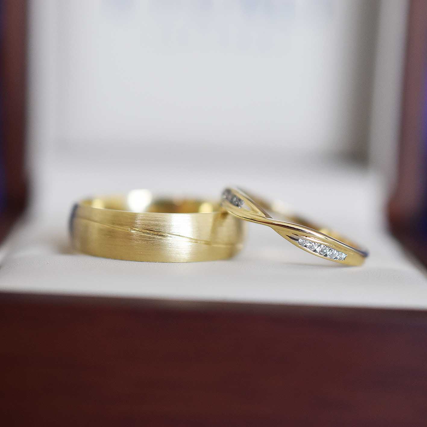 Diana & Cristian se acercaron con nosotros para fabricar sus alianzas de matrimonio. Su evento fue íntimo y privado debido a la nueva normalidad, así que un momento muy especial fue el momento de la elección de sus anillos. Para él, nuestro modelo Vincent, modificando toda la alianza con terminado mate. Para Diana, churumbela canal cruzado, con 0.15 ct de diamante natural. Ambas piezas fueron fabricadas en oro amarillo 14K.