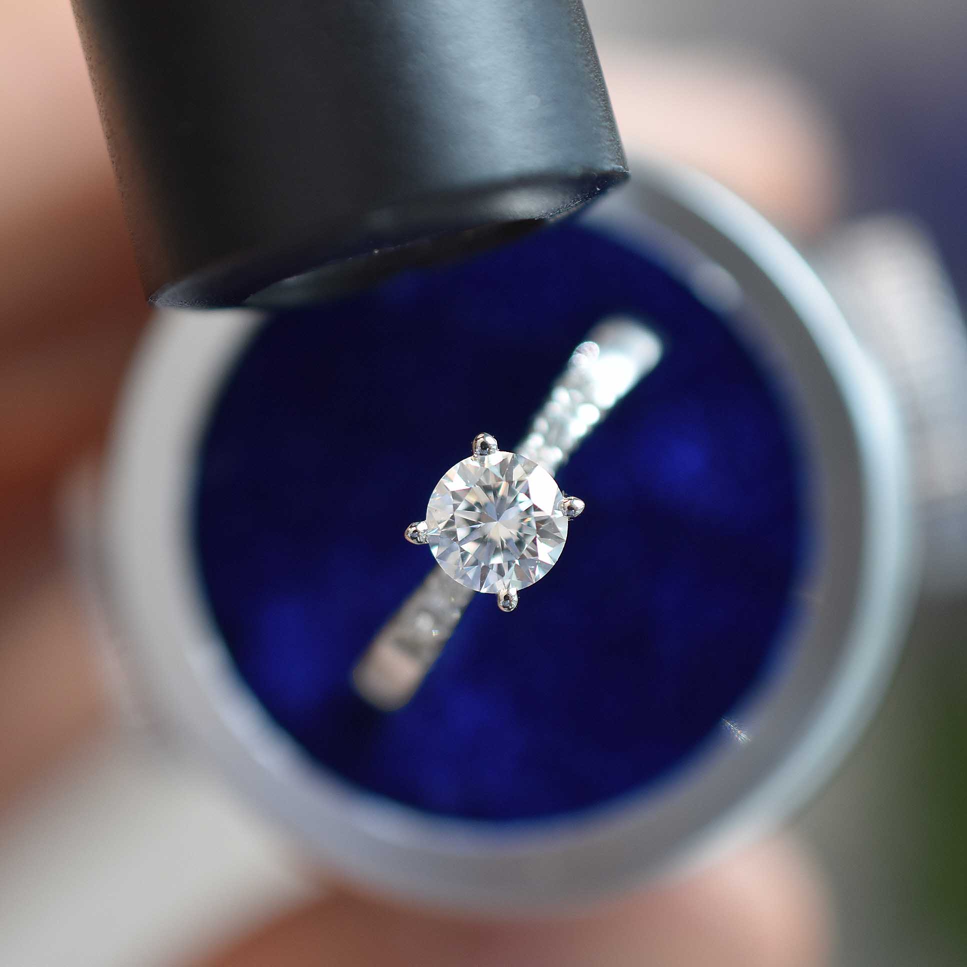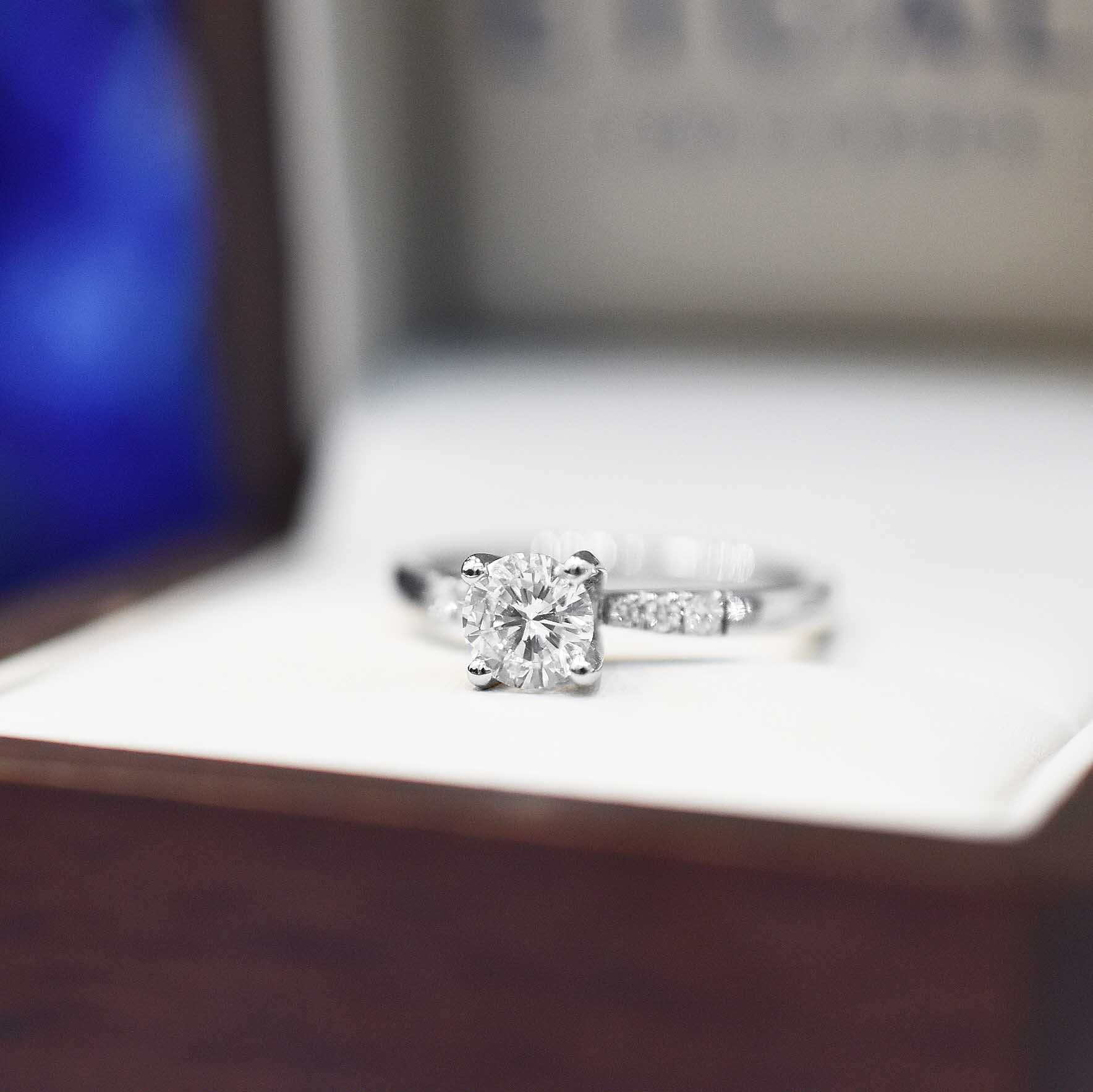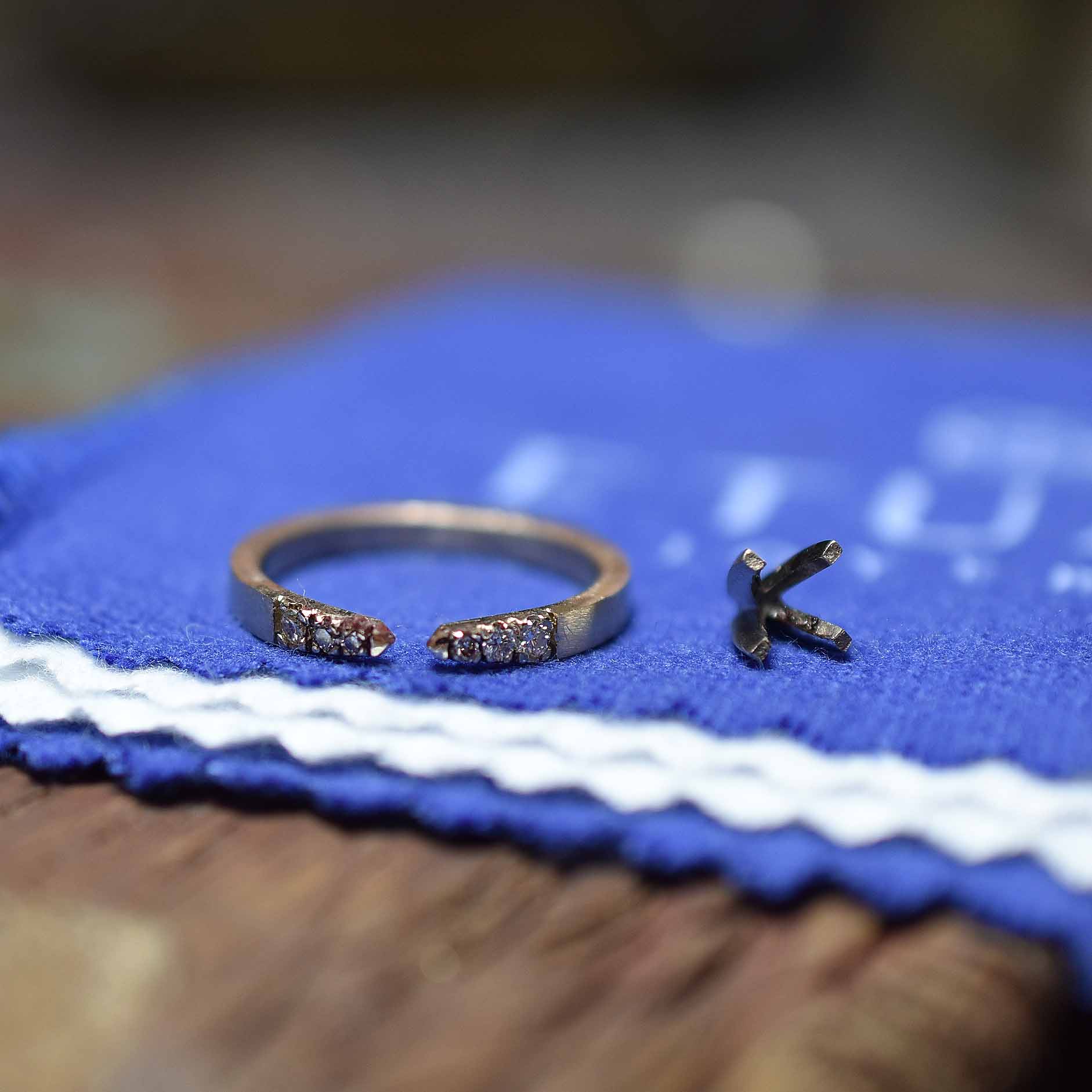 Una de nuestras piezas favoritas para fabricar: anillo compromiso Eiffel. El novio se acercó con nosotros para fabricar esta pieza para su novia. Eligió un diamante central redondo brillante de 0.70 ct incoloro (Lo cual recomendamos bastante para este tipo de anillos, ya que la piedra central debe ser la protagonista). Para este tipo de anillo, nuestro joyero lo fabrica 100% a mano, haciendo las cuatro uñas por medio de la técnica de vaciado, y soldándolas al cuerpo del anillo. La pieza se elaboró en oro blanco 18K.