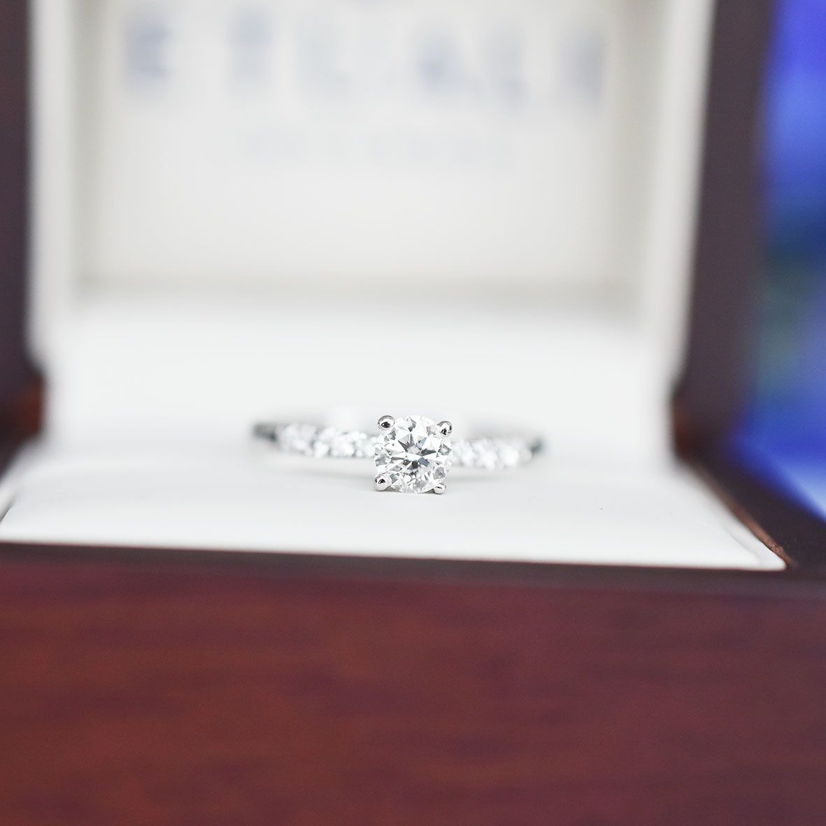 Daniel se acercó con nosotros vía cita virtual para fabricar el anillo de compromiso para Regina. Vio en nuestra página al igual que en varias fotos de Pinterest un modelo pavé, con diamantes que iba de mayor a menor. Fabricamos este anillo con un total de 0.16 ct, que va acompañado de cuatro diamantes en cada lado. Para la piedra central, elegimos un diamante redondo de 0.50 ct. Le comentábamos a Daniel que al elegir este tipo de montura, logra que la piedra central luzca aún más, ya que los laterales van haciéndose más pequeños al llegar al diamante principal.